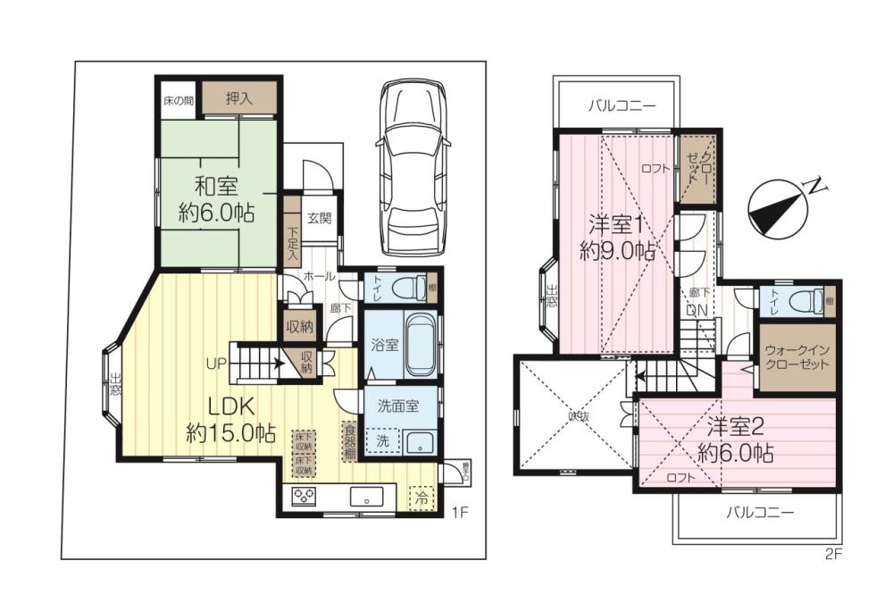 販売中\カースペース1台付き×開放感ある吹抜けで明るく心地よい住空間!/