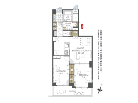 | 間取り | 2LDK (洋室6.1/洋室5.5/LDK12.4) | ||||
