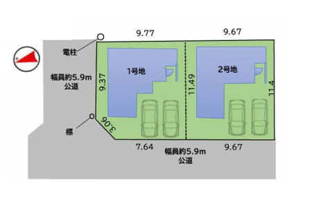| 接道状況 | 接道: 北 公道 道路幅: 5.9m 接道: 西 公道 道路幅: 5.9m |